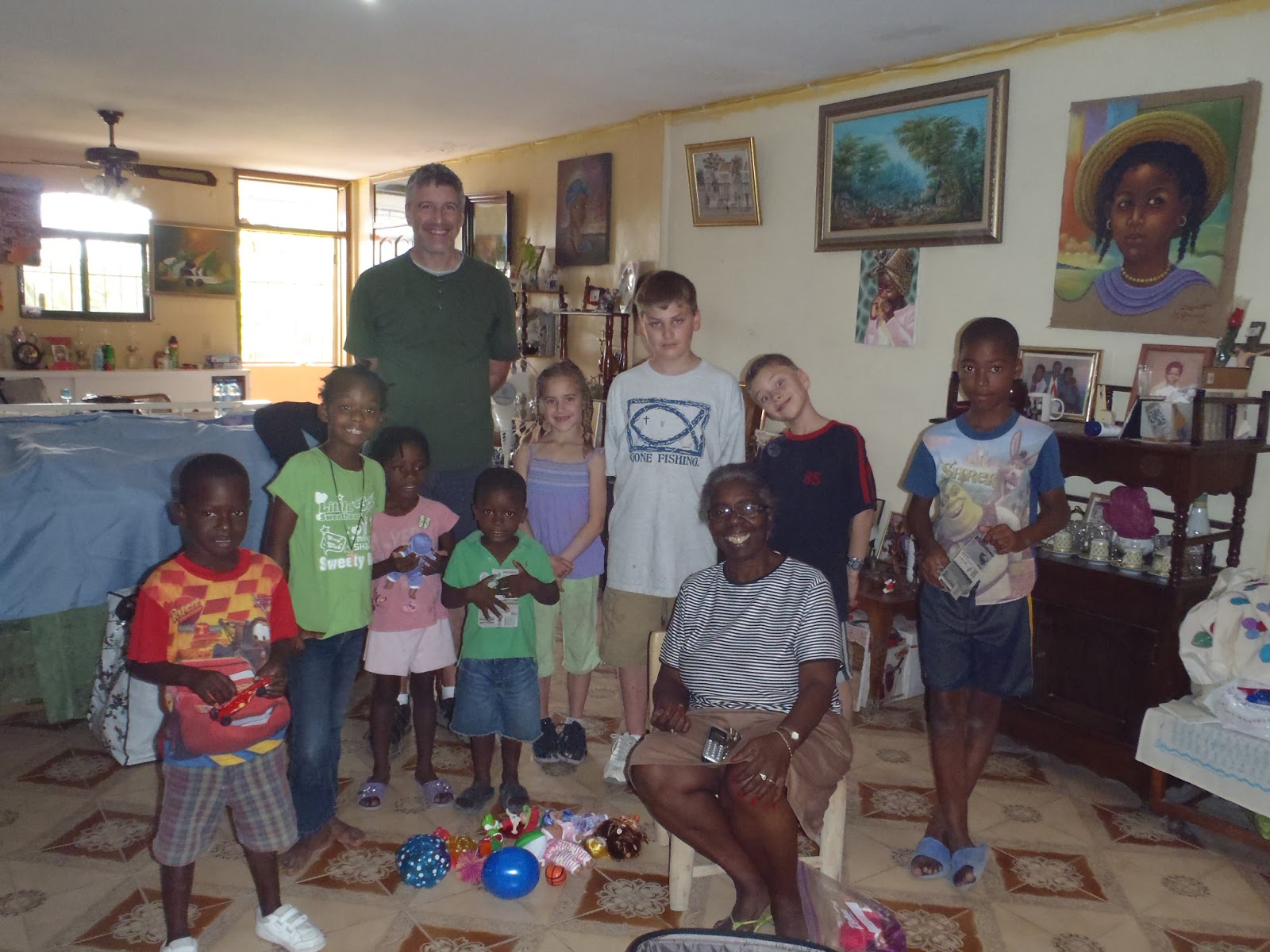 After lunch Eveline and I finished going through the gifts that we brought down. We had already given one of the footballs (soccer balls to you all...) away to the older boys, but everything else was divided into three categories: Today - Here, Today - Neighborhood, and Later. A few were given away inside to some neighborhood kids and the rest were distributed out side...